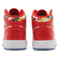 The Jordan 1 Mid 'Barcelona Sweater Red Patent' is a bold addition to any sneaker collection, inspired by Michael Jordan's iconic jersey from the 1992 Barcelona Olympics. Featuring a distinctive red patent leather upper with vibrant multi-coloured accents, this shoe offers a unique blend of style and heritage. The high quality of materials and workmanship ensures durability and comfort, making it perfect for casual and casual work and athletic activities.