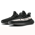 The Yeezy Boost 350 V2 Black-White is a sleek and stylish sneaker that features a black and white colorway with a prime knit upper and Boost cushioning. The Black-White colorway, as the name suggests, features a primarily black upper with white accents. The upper is constructed using Adidas' Primeknit technology, which provides a flexible and breathable fit. The shoe's design includes a black midsole with Adidas' signature Boost technology, which offers excellent energy return and cushioning for enhanced comfort during wear. The outsole is typically made of rubber, providing durability and traction. This stripe is a recognizable element of the Yeezy Boost 350 V2 line and adds a unique touch to the overall design.